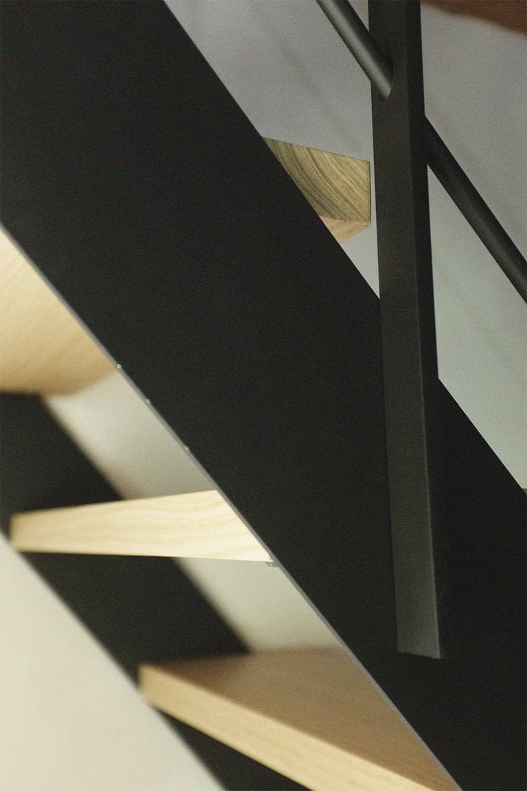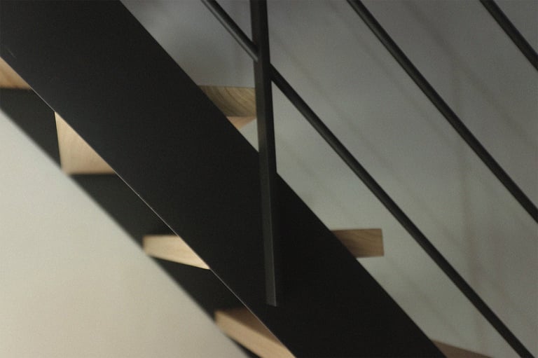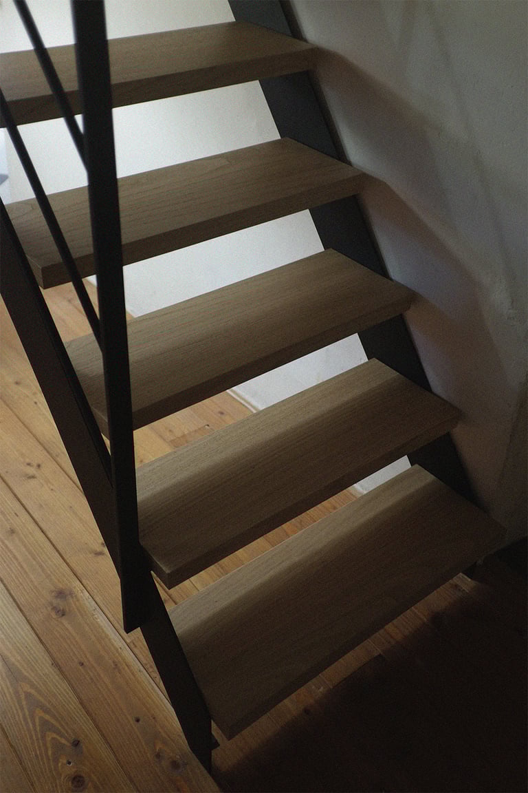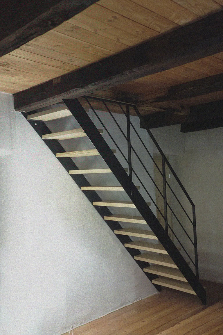 Escalier limons acier marche en châtaigner brut
